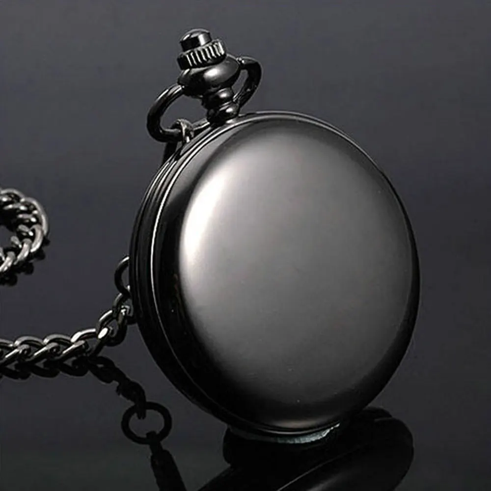 Retro Black Fashion Silver Smooth Steampunk Quartz Pocket Watch Stainless Steel Pendant 30CM Chain Gift Box for Men Women friend